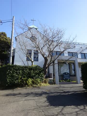 葉山ののんびりとした町を歩いて、急坂を上ると、坂の上の教会。