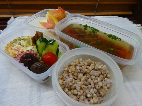 今日は徳島県の祖谷地方の郷土食、蕎麦米雑炊をお弁当にしました。