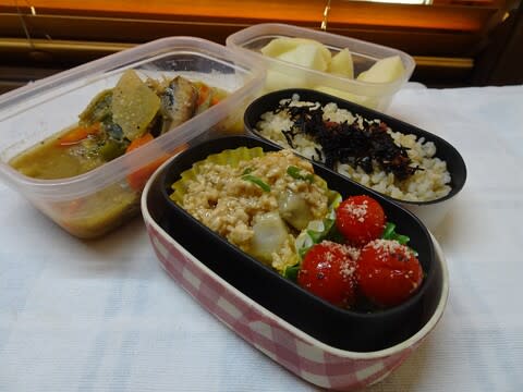 里芋に片栗粉をまぶして油多めで焼いたのに、鶏そぼろをたくさんかけてみました。