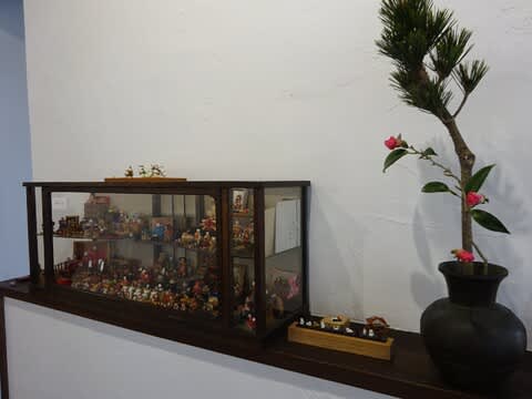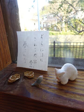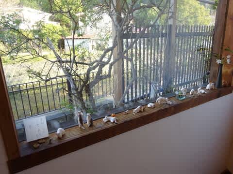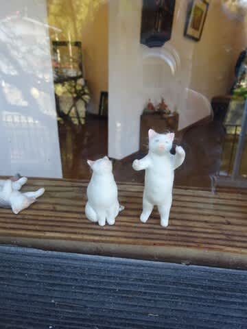 そして窓辺には…オーナーさんの作品の何とも可愛らしい猫の置物