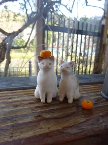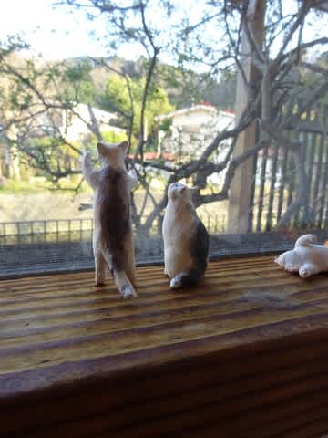 そして窓辺には…オーナーさんの作品の何とも可愛らしい猫の置物