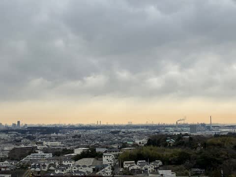 暑い雲とオレンジにもやる東京湾の景色。良いもの見ました。
