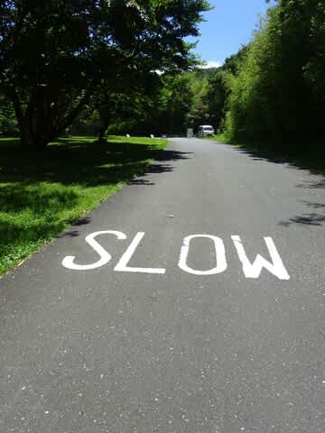 なので、掲示板も英語と日本語の両方です。道路標識も。