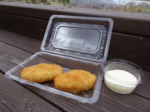 噂通り美味しいコロッケ。地元の人も買いに来ていました。