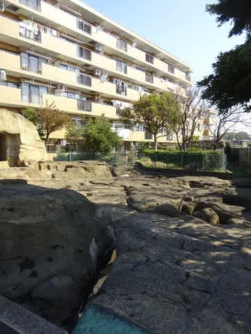 高台にある普通の住宅街にぽっかりと現れる上行寺東席遺跡。