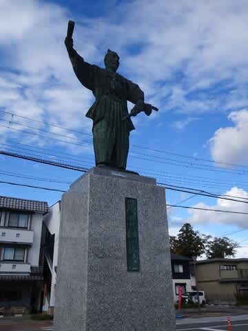 信長公の像と一緒に並んで、飛び出し君も信長公仕立て。