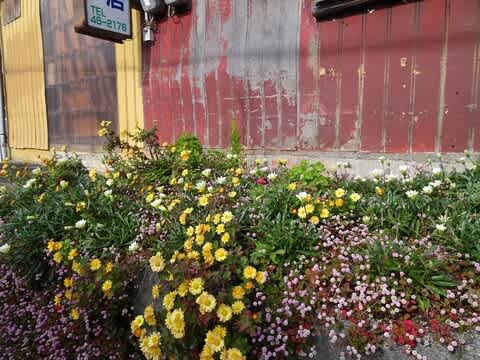 ベンガラ塗のお宅と秋の草花も良い感じ。