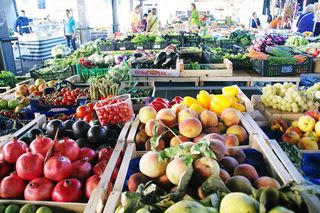 この市場で桃・ざくろ・ラズベリーを買って・・・。