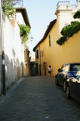 この細い道は、フィレンツェの町へ下り坂をのんびぶらぶらり歩いて帰って来れる道。