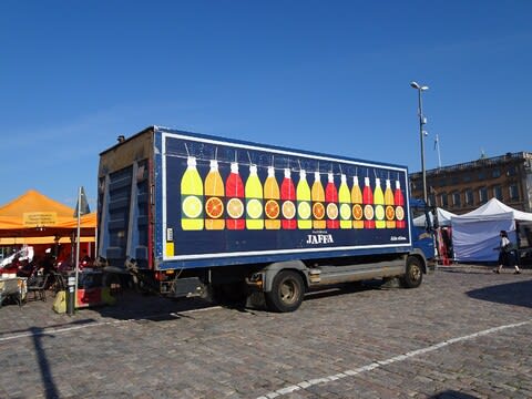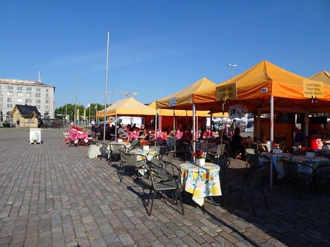 広場の横にある、ヘルシンキで一番古いというマーケットでのどの渇きをいやすことに。