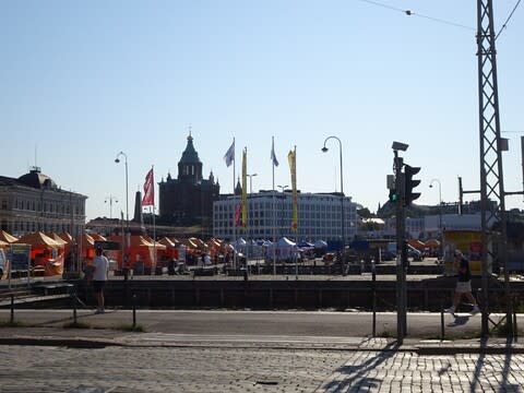 ホテルの受付で聞いたら、ヘルシンキ中央駅からマーケット広場のある港まで歩いて行けそうなので