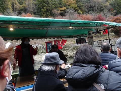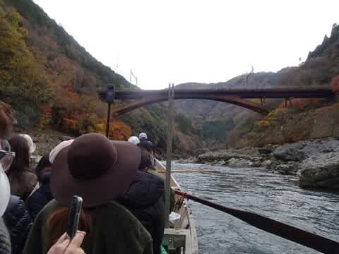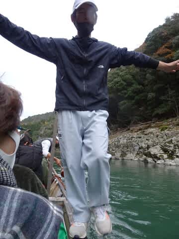 保津川下りは基本予約制ではないのですが、Tちゃんママがツアー会社で予約してくれて乗ることができました。