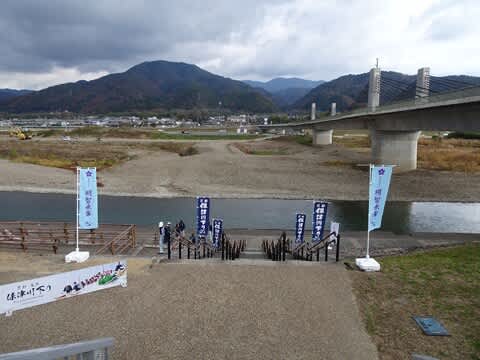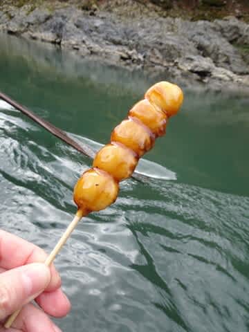 嵐山近くになると船がやってきて温かい食べ物を売ってくれます。