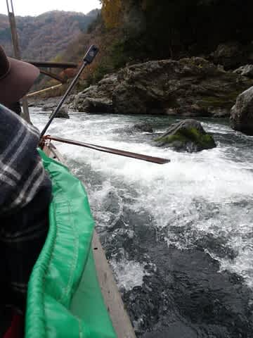 この日は水量が少ないとかで穏やかな川下りですが、一部急流も。