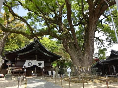 素晴らしい楠の大木がある神社です。でも上には、ロープウェイが通っているんですよ。
