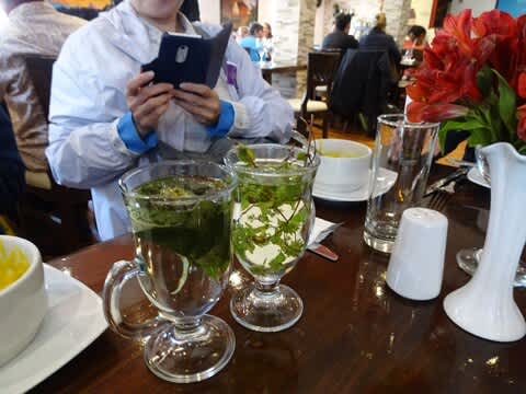 ビールと行きたいところですが、ここは高所。高山病は避けたいので我慢してハーブティ。
