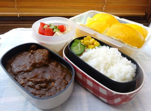 今日のお弁当は、カレーライスでさくっと簡単に。