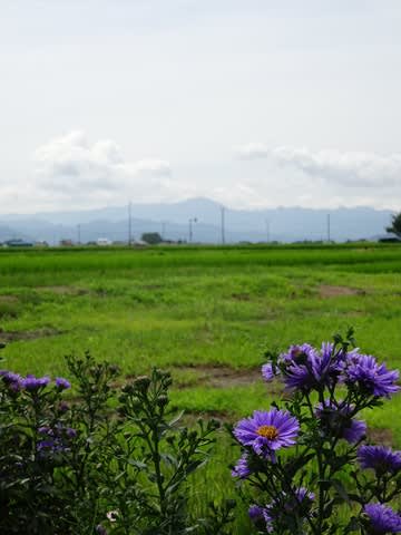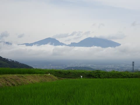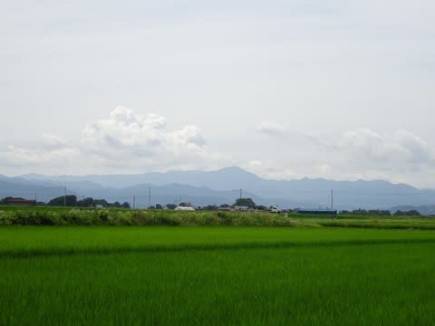 浅間山を見ながら気持ち良い道が続きます たぶんこの辺りが五郎兵米の産地のようです。