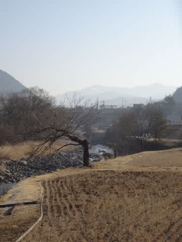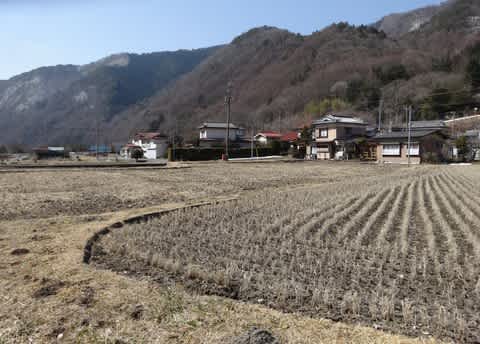 とってもひなびた木曽川沿いの集落。福寿草の群生も。