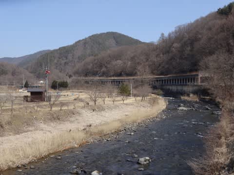 跡山と山の裾の木曽川沿いを歩いて行くのですねぇ。わくわく