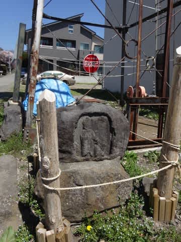 道祖神の周りが4本の柱で囲ってあります。この辺りの風習なのでしょうね。