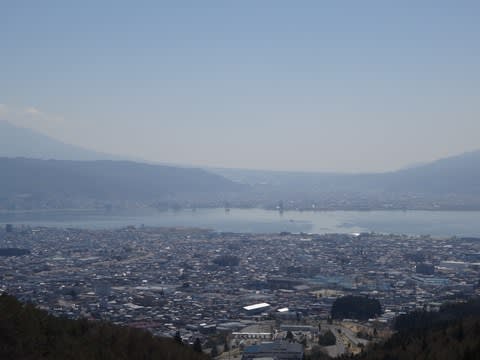 急な下り坂を下って行くと岡谷の町が近づいてきました