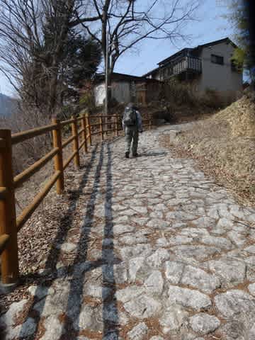 昔の中山道を復元した石畳を登ったら、集合住宅が。