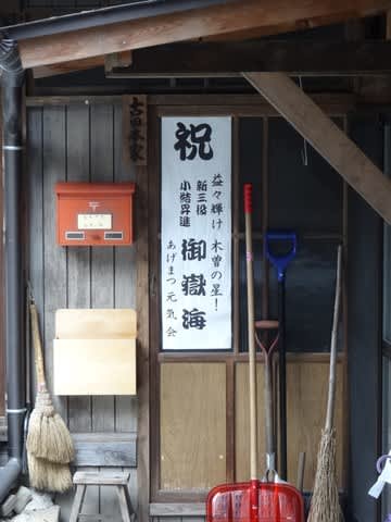 地元の期待を背負う御嵩海のポスターがたくさんのお宅に貼られています。