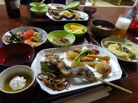 これがまた、品数多くて素晴らしくて。熊の肉とか山菜が多種多様です。