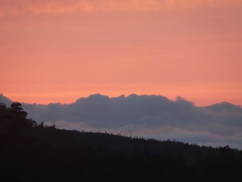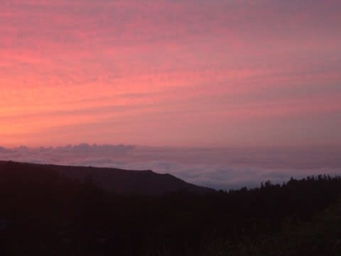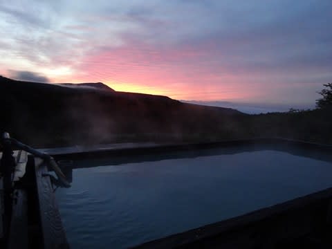 ふと窓の外を見ると…朝焼けが広がっています。慌てて見晴らしの良い女性専用露天風呂へ