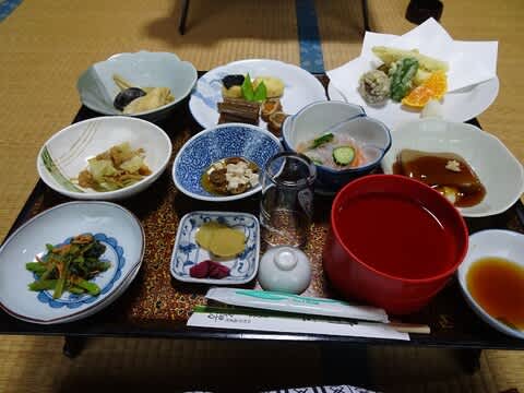 もちろん精進料理です。地元のキノコや山菜がたーっぷり