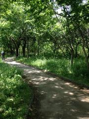 整備された公園の中を歩きます。このころはまだ余裕なんですが。