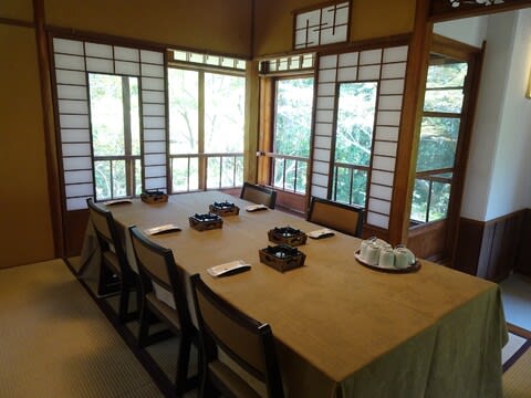 広大なお庭の中に点在する古民家でお食事を食べることができるんです。