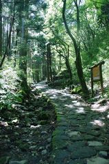 難所はもう越えたので楽チン楽チン。時々国道を横切りながら、だらだらの石の上り坂をひたすら上へ。