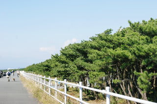 松林の横にあるまっすぐの道をひたすら歩く歩く・・・。