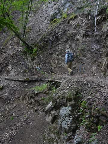 昔の草鞋だったら、滑らないのでしょうけど…登山靴だとどうしても足に力が入ります。