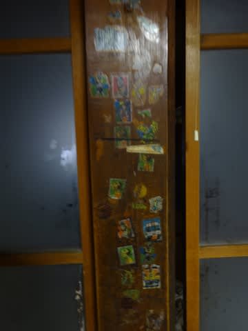 懐かしいシールの貼ってある柱。