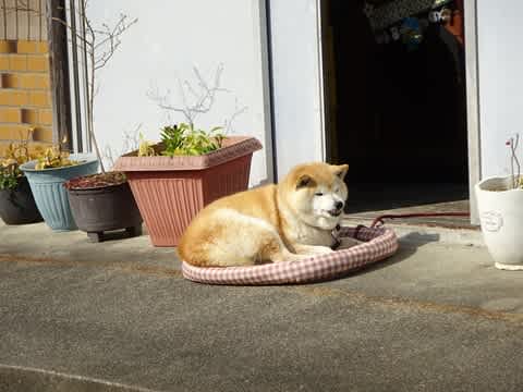 ひなたぼっこのワンちゃんも気持ちよさそう。
