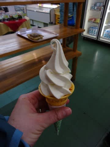 念願のソフトクリームを食べることができましたーうま~濃厚。たまらん