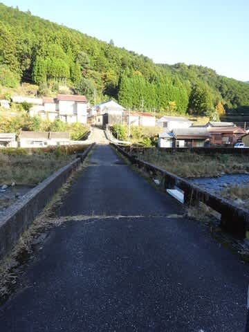 峠を越えてまた集落に入り、欄干の低い橋を渡ります。