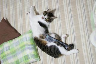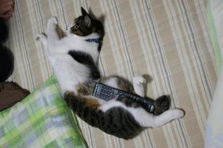 誰か(たぶん夫か息子)が置いたのでしょう・・・。嫌じゃない感じのはーちゃん。