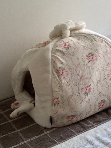 最近寒いので、ポカポカハウスの中がお気に入り。