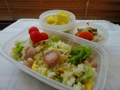 レタスチャーハンのお弁当と、はーちゃんの寝姿