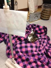 コロコロの柄に「はーちゃん寝ています」と書いて、ひざ掛けの前に立てておきました。
