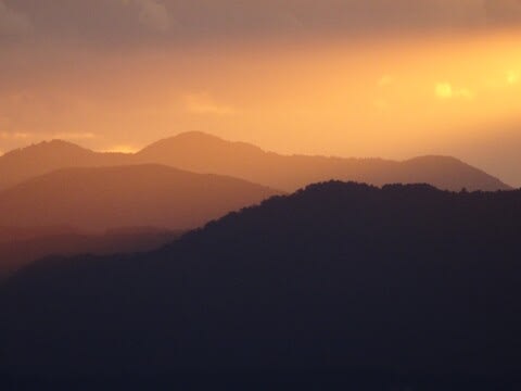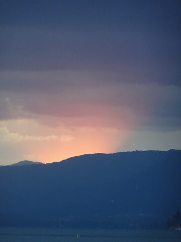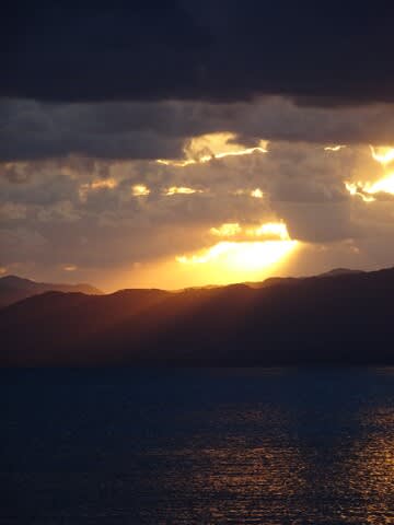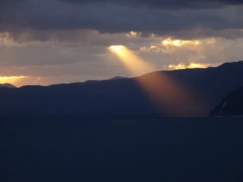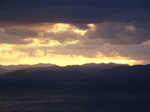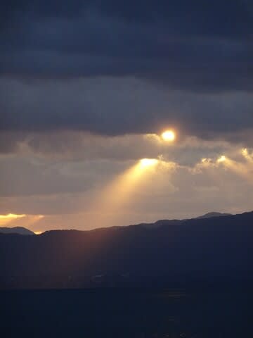 日が沈んでからも山の後から光が。こんなの見たことないなぁ