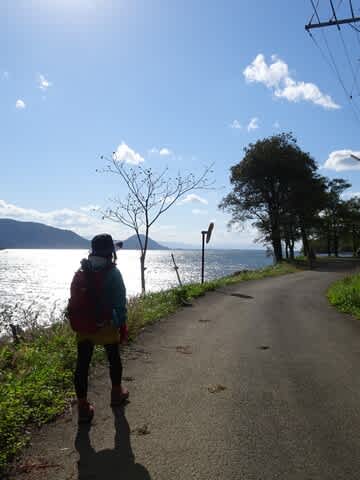 ここで軽くランチをして、山道と奥琵琶湖パークウェイを歩きます。