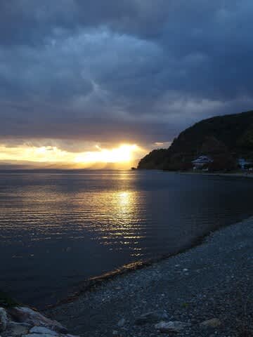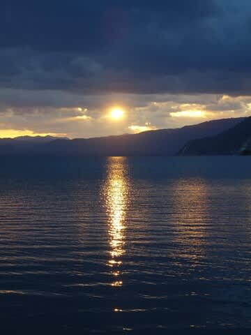 日が沈んでからも山の後から光が。こんなの見たことないなぁ
