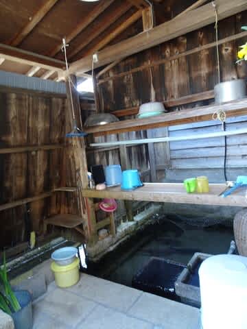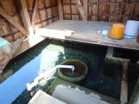 ここで食べ残しや洗った食器からこぼれた残飯を鯉が食べてくれるのです。