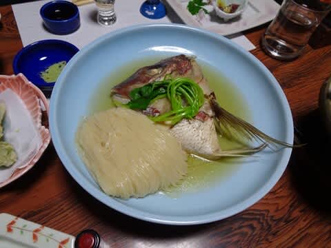 大きな鉢に鯛そうめんが入っていて、てっきり3人で食べるものかと思ったら、「お待たせしました~」って