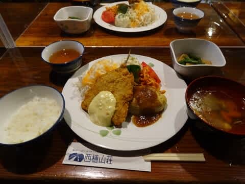 乾燥室で濡れた衣類やリュックを乾かして、遅いランチ。